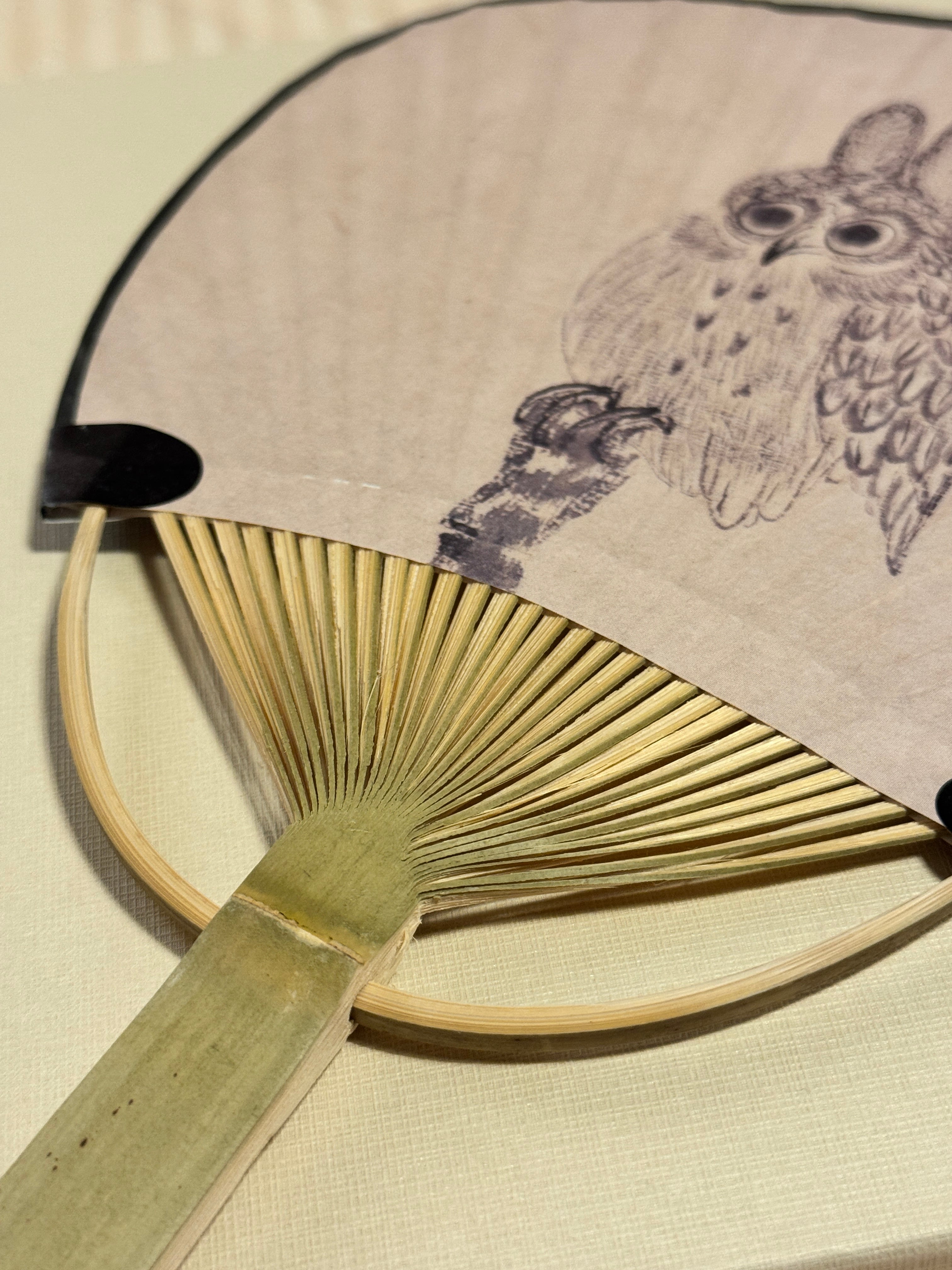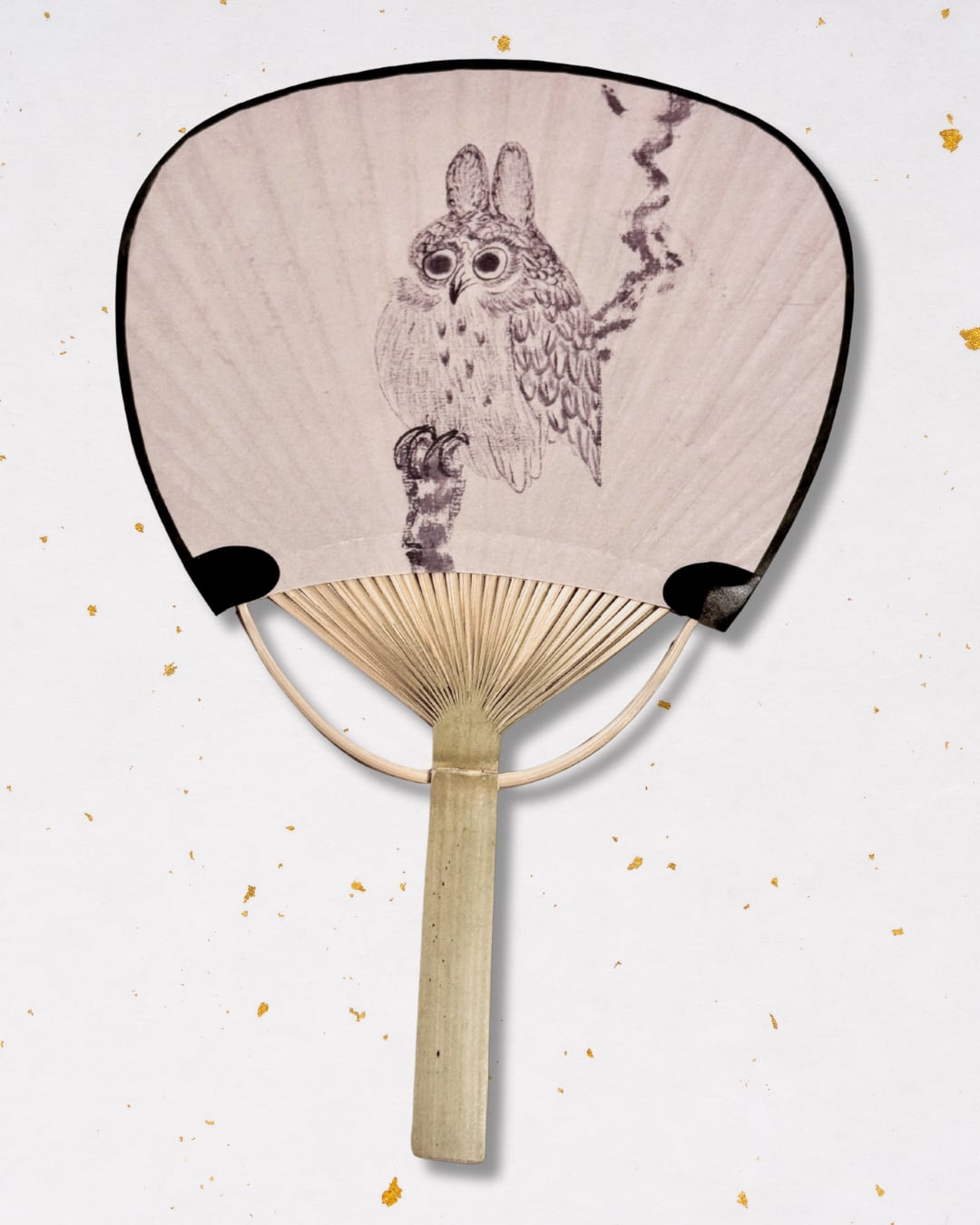 その柔らかなまなざしと、どこかユーモラスな表情をうちわに映しました。